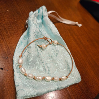 The Coastal Pearl Knot Bracelet brings effortless beach-chic style to everyday wear. Hand-strung on natural leather cord, this bracelet features a row of luminous freshwater pearls, each separated by hand-tied knots for an organic, artisanal feel. Lightweight, adjustable, and perfect for stacking, it blends natural textures with soft, elegant shine.