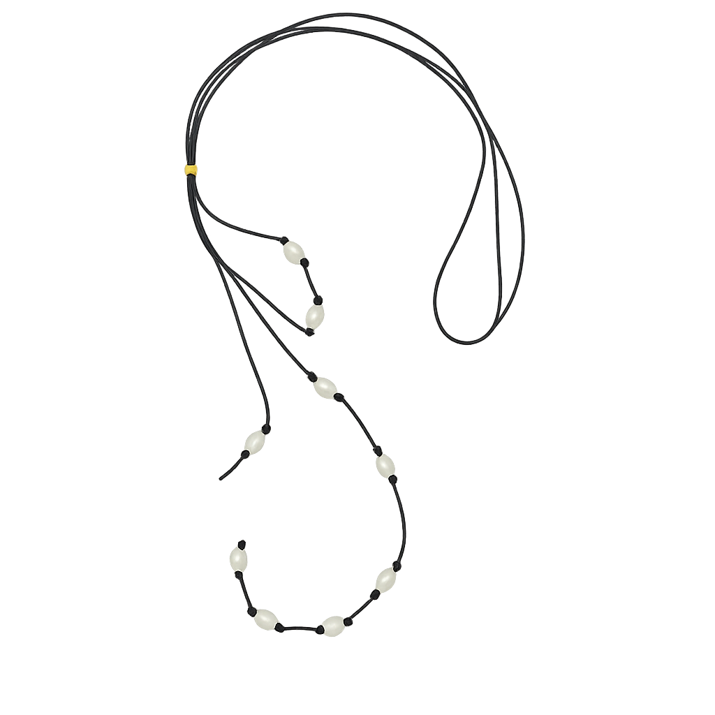 Minimal, fluid, and quietly elegant, the Ligne Noire Pearl Adjustable Necklace is designed for effortless versatility. Soft white pearls are spaced along a fine black cord, creating a graceful rhythm that moves naturally with the body.