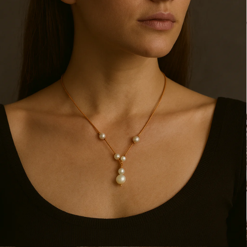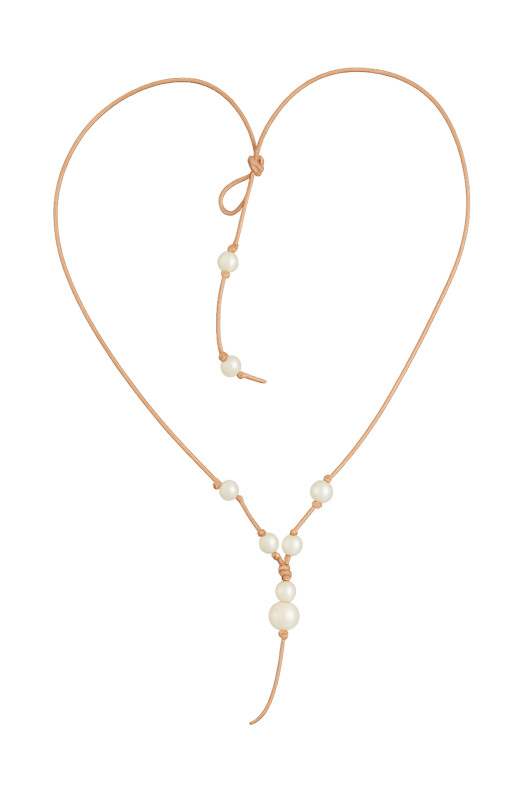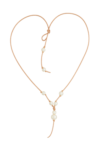 The adjustable lariat silhouette allows the necklace to be worn long and fluid or gently cinched for a more sculpted neckline. Each pearl is individually knotted, creating subtle spacing and organic rhythm, while the graduated pearl drop adds visual weight and elegance without feeling heavy or formal.