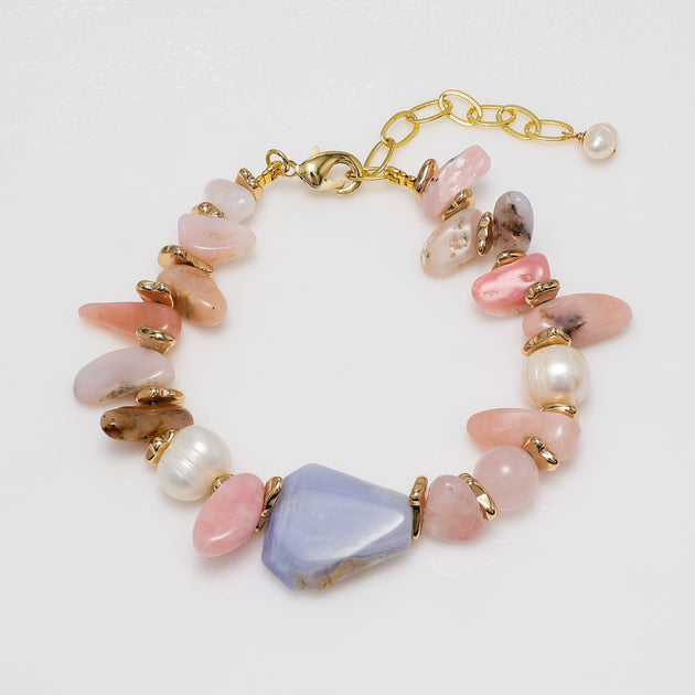 Mixed Gemstone & Pearl Bracelet with Blue Lace Agate Accent | So Silver
