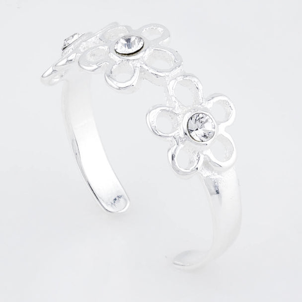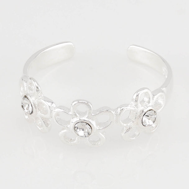 3 Daisies w/CZ's Sterling Silver Toe Ring