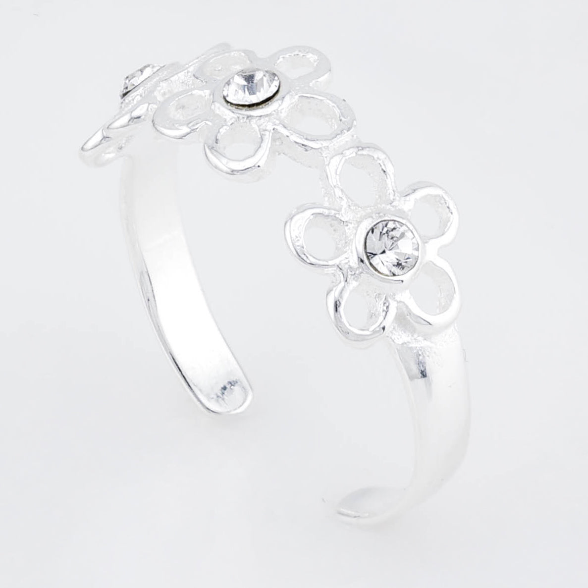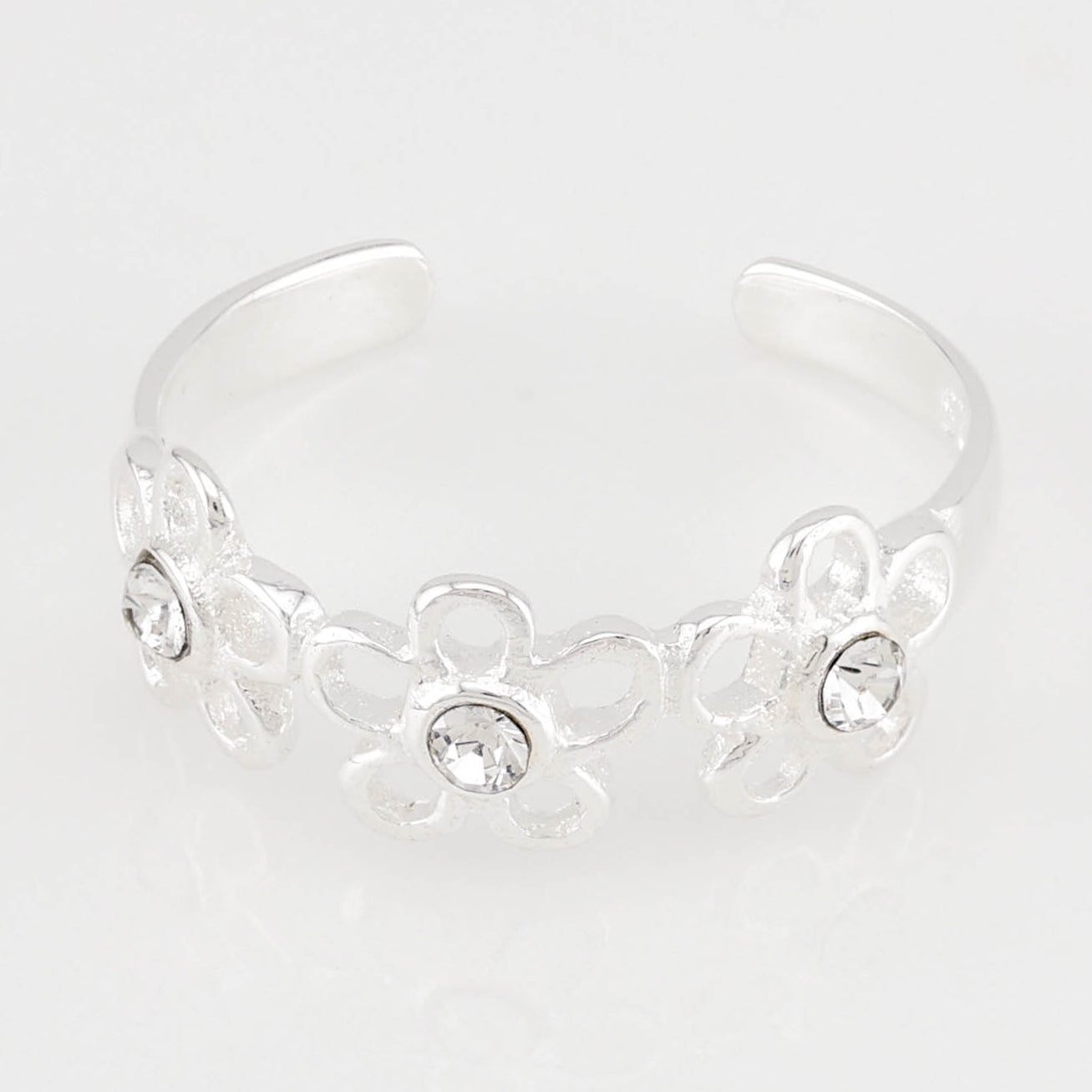 - 3 Daisies w/CZ's Sterling Silver Toe Ring