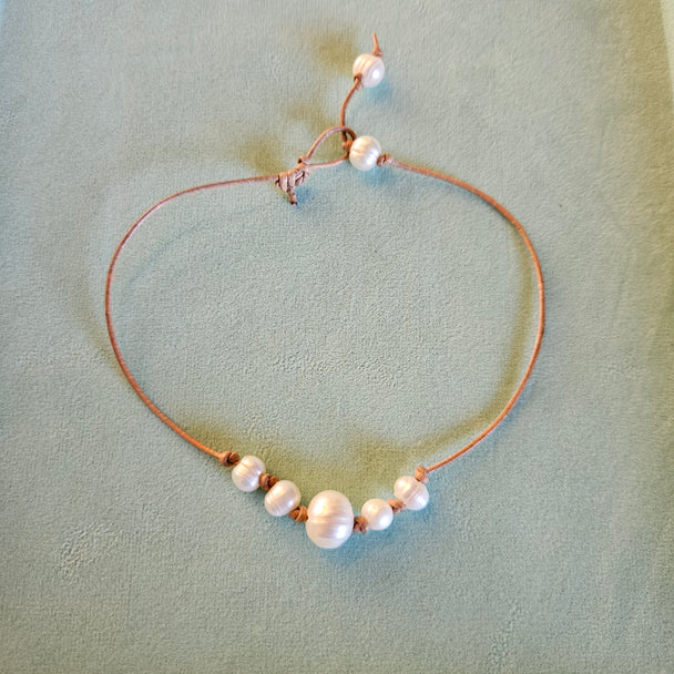 Tidal Pearl Cluster Bracelet – Adjustable Freshwater Pearl Bracelet on Tan Cord