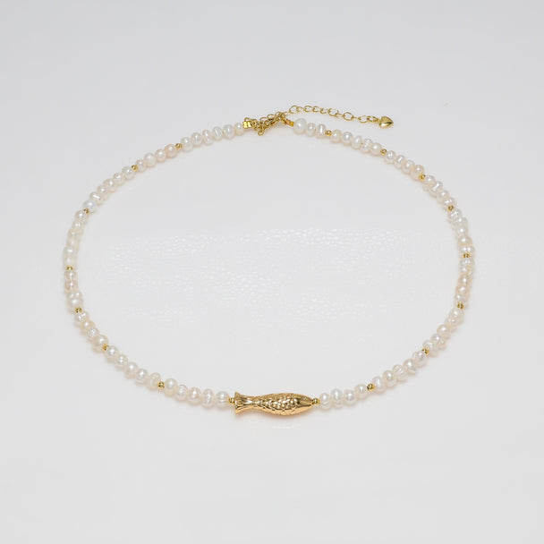 Freshwater Pearl Bracelet with Sculpted Gold Fish