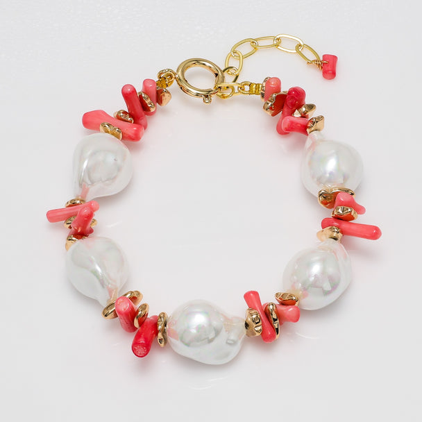 Baroque Pearl & Coral Bracelet with Gold Accents
