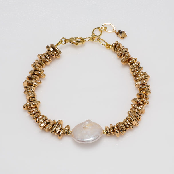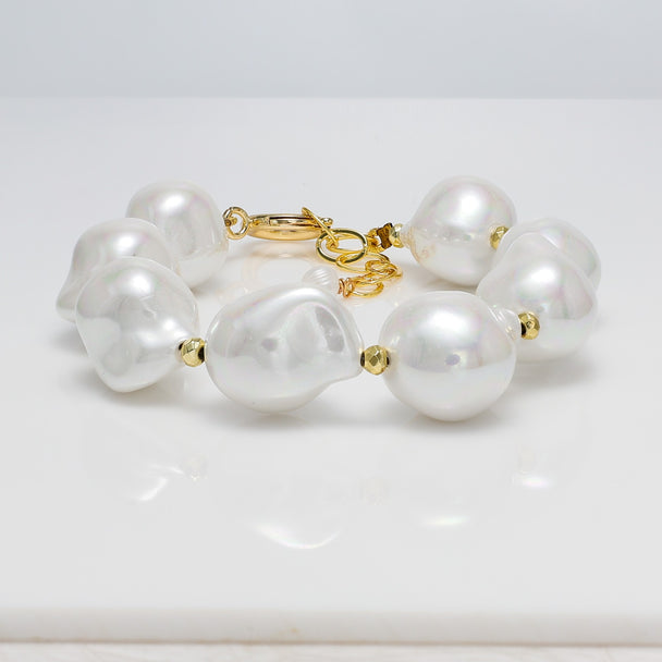 Oversized Baroque Pearl Bracelet with Gold Accents