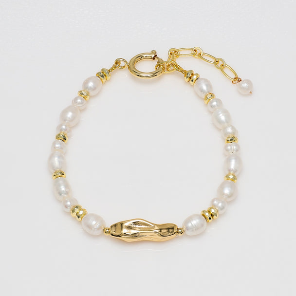Freshwater Pearl Bracelet with Sculpted Gold Accent