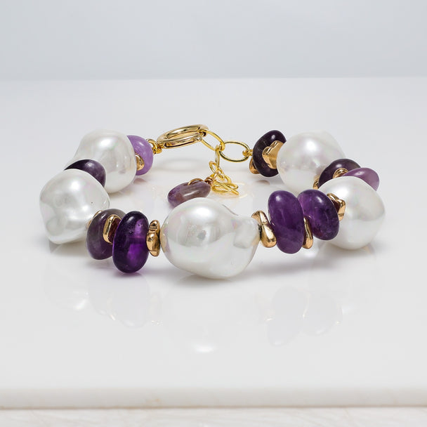 Baroque Pearl & Amethyst Bracelet with Gold Accents