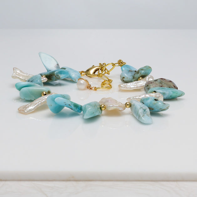 - Mixed Gemstone & Pearl Bracelet with Blue Lace Agate Accent