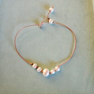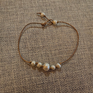 - Tidal Pearl Cluster Bracelet – Adjustable Freshwater Pearl Bracelet on Tan Cord