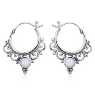- Boho Mother of Pearl Hoop Earring in Sterling Silver