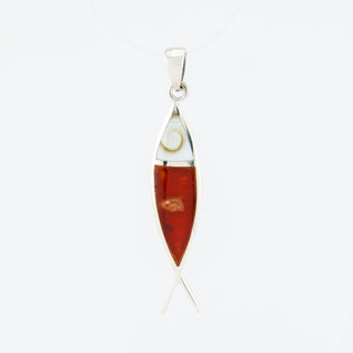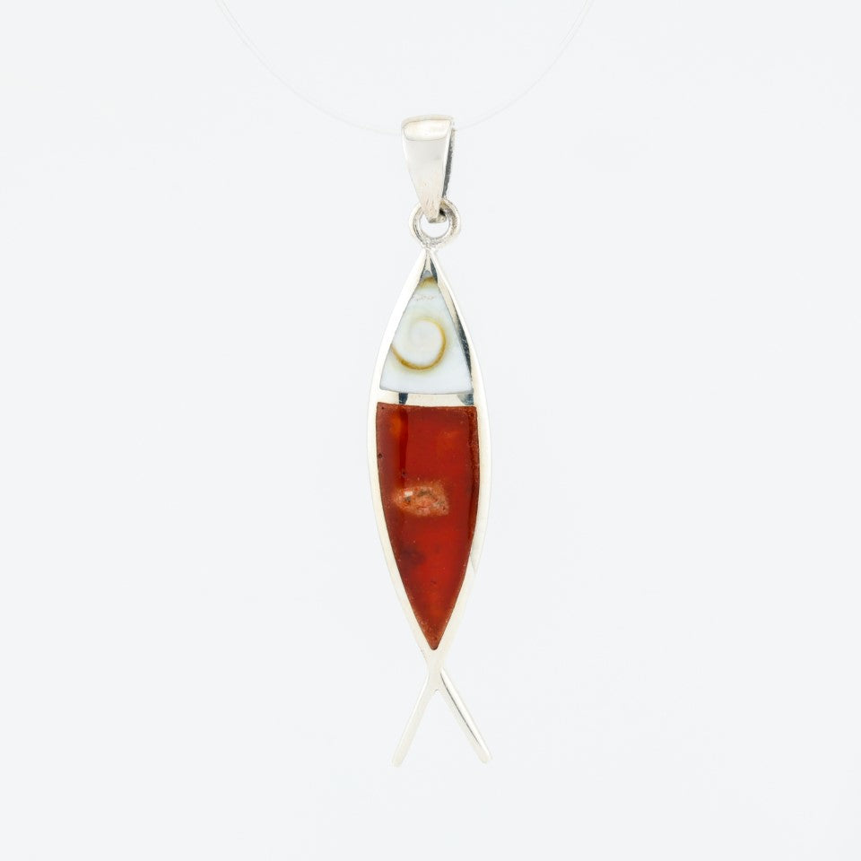 - Fish Pendant Sterling Silver w/ Red Coral inlay .925