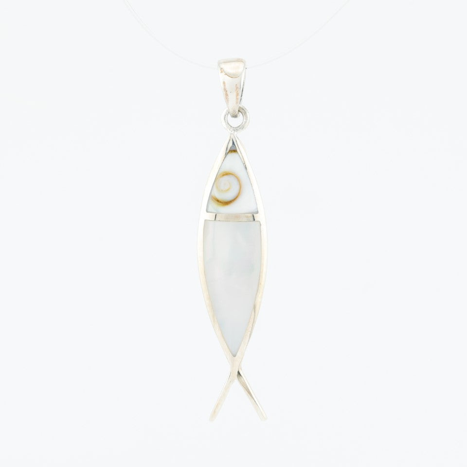 Fish Pendant Sterling Silver w/ Shiva Inlay .925