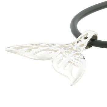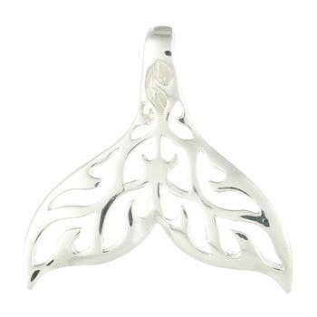 Nice sized whale tail crafted in highly polished sterling silver featuring a pattern of openings that create a sense of movement and speed. The whale tail is seen as a symbol of good luck, peed and strength. It also it is said to be used as an amulet for safe passage when traveling by water.