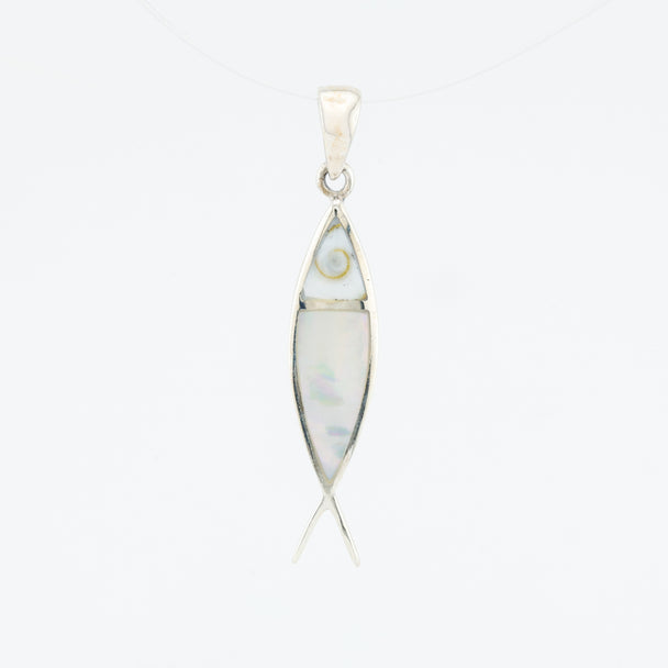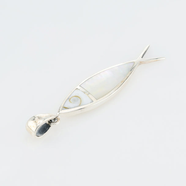 Fish Pendant Sterling Silver w/ Mother of Pearl Inlay .925