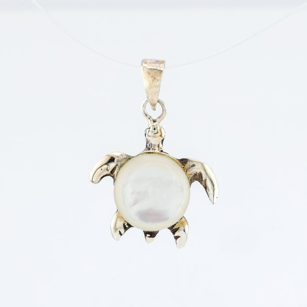 Turtle Pendant Sterling Silver w/ Mother of Pearl Inlay .925