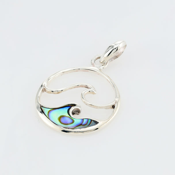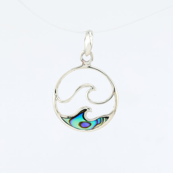 Circle 2 Waves Pendant Sterling Silver w/ Abalone Inlay .925