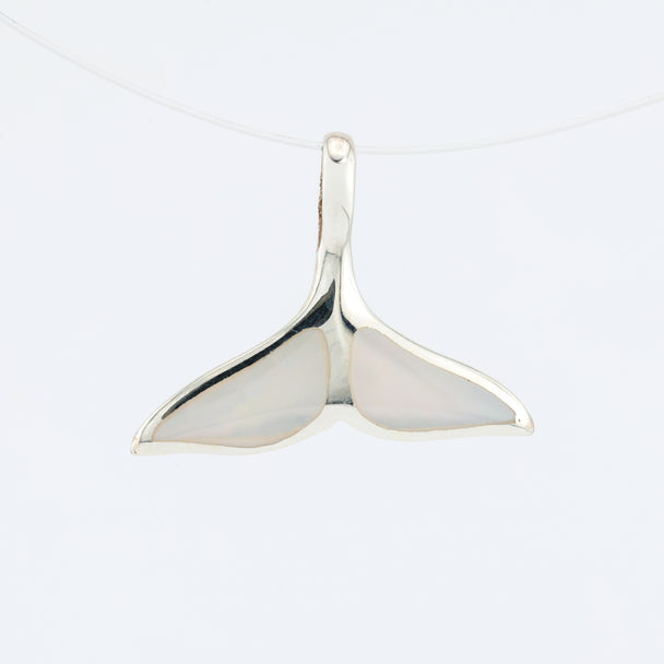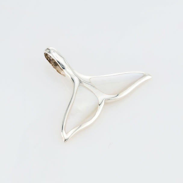Whale Tail Pendant Sterling Silver w/ Mother of Pearl Inlay .925