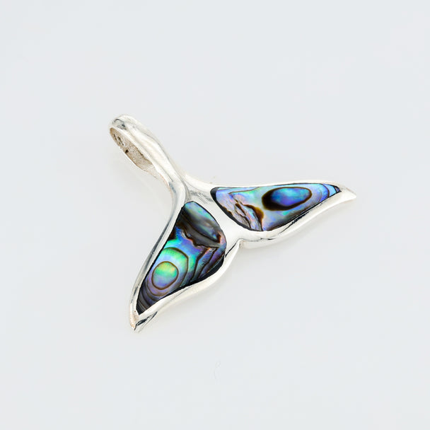 Whale Tail Pendant Sterling Silver w/ Abalone Inlay .925