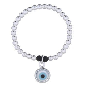 925 Silver Bead Stackable Stretch Ring with Evil Eye Charm